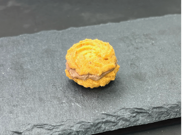ヘーゼルナッツのサブレにベルギーのミルクチョコレートをサンドした、甘く香ばしい一品です。
